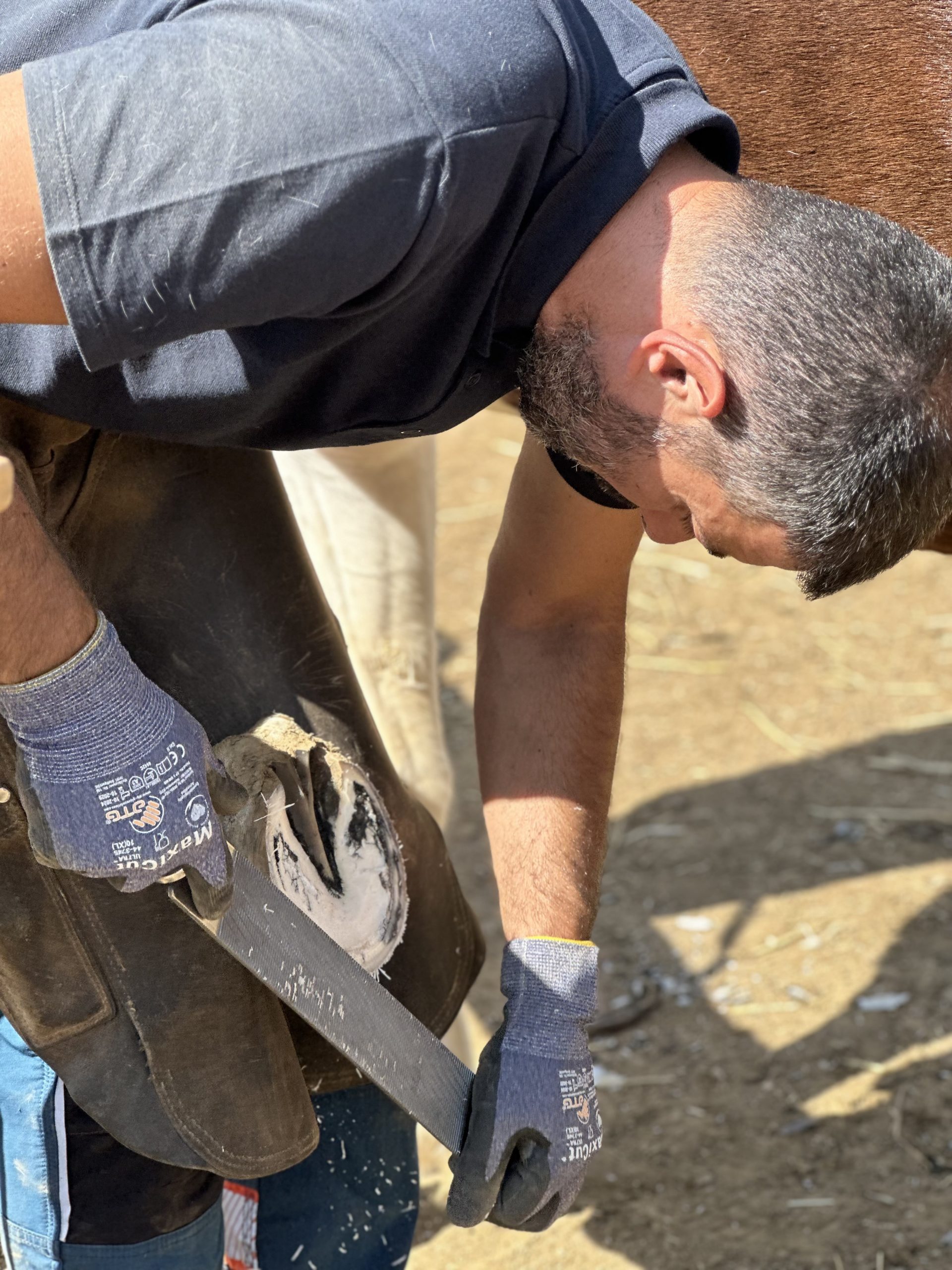 Η κατάσταση των οπλών όλων των ζώων ήταν γενικά καλή. Επειδή ο ιδιοκτήτης αναλαμβάνει ο ίδιος το πετάλωμα, ο Τάσος του έδειξε τις σωστές τεχνικές πεταλώματος, τί πρέπει να προσέχει και ποια λάθη να αποφεύγει.