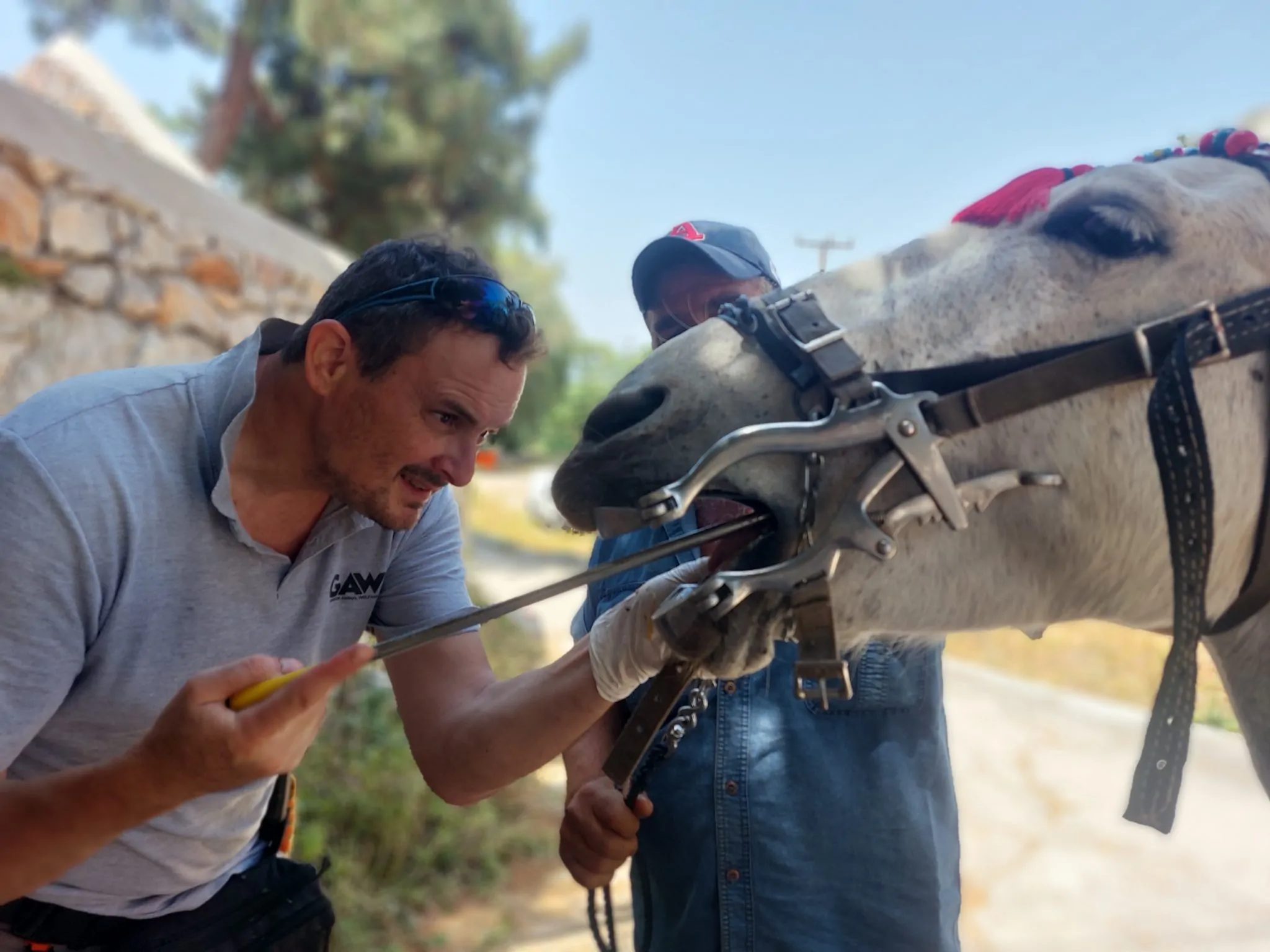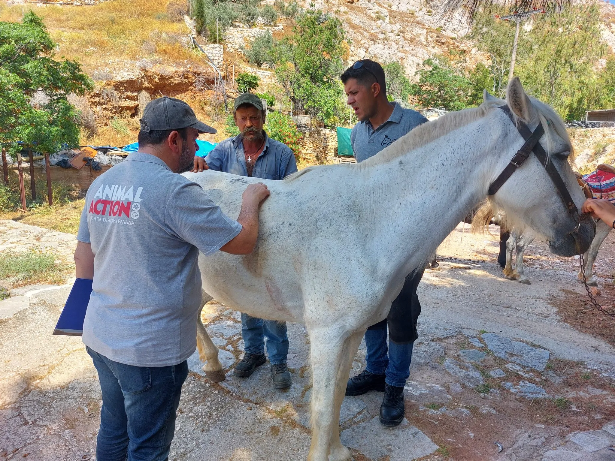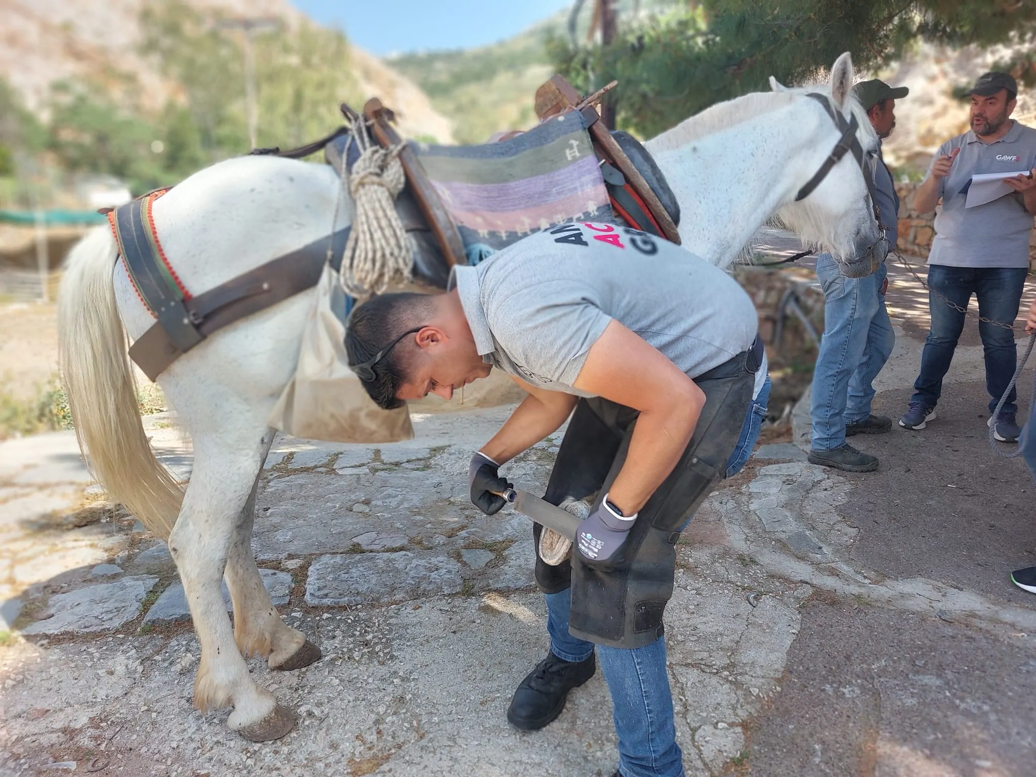 Ο κτηνίατρος Κώστας Όκκας, ο οδοντοτεχνικός Άλκης Γκέσκος και ο πεταλωτής Βάιος Μπακρατσάς προσέφεραν τις υπηρεσίες τους σε 41 ιπποειδή (23 άλογα, 15 μουλάρια, 3 γαϊδούρια).