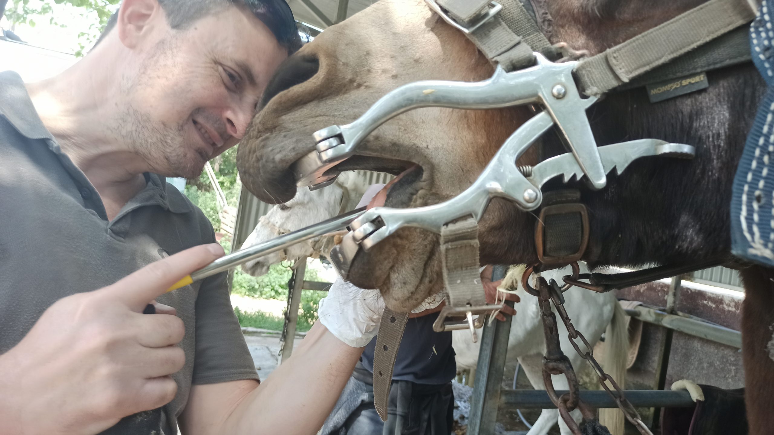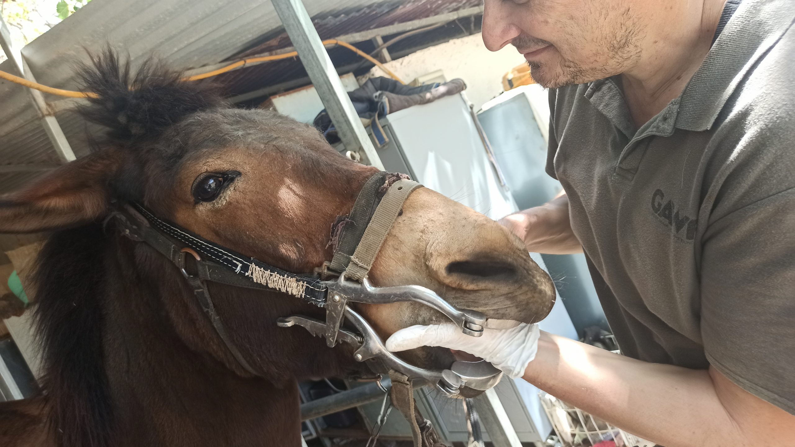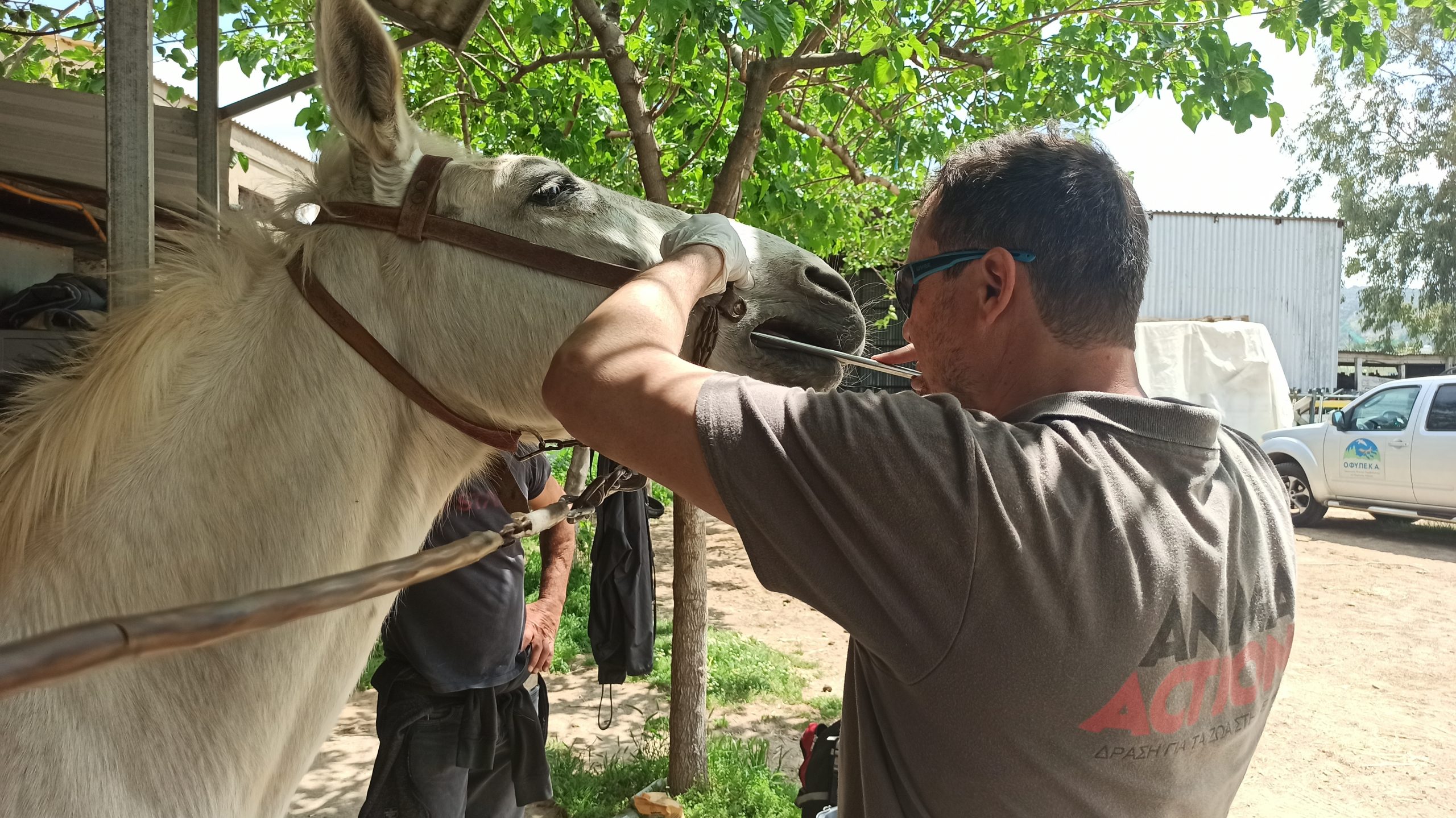 Ο Άλκης εξέτασε επτά μουλάρια και ένα άλογο. Εκτός από τις αιχμηρές οδοντικές ακίδες που αποτελούν την ετήσια ρουτίνα φροντίδας, διορθώθηκε ένα κυματοειδές στόμα και κάποια μικρά οδοντικά άγκιστρα, ενώ αφαιρέθηκε οδοντική τρυγία από κοπτήρες και κυνόδοντες. Χάρη στην ετήσια φροντίδα, όλα τα στόματα ήταν σε πολύ ικανοποιητική κατάσταση.