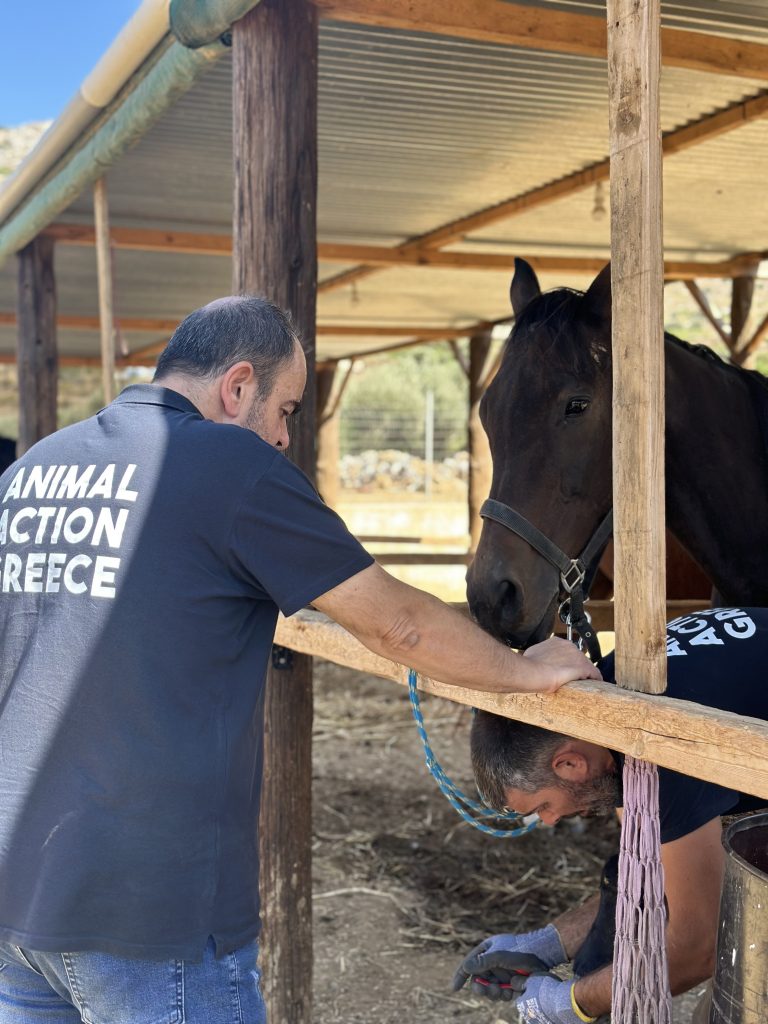 In Patmos, the three carers – grandfather, father and son – of the Meloi sanctuary for retired donkeys, were delighted to see us again. With their valuable assistance, the team was able to provide full treatments to all 17 elderly residents.