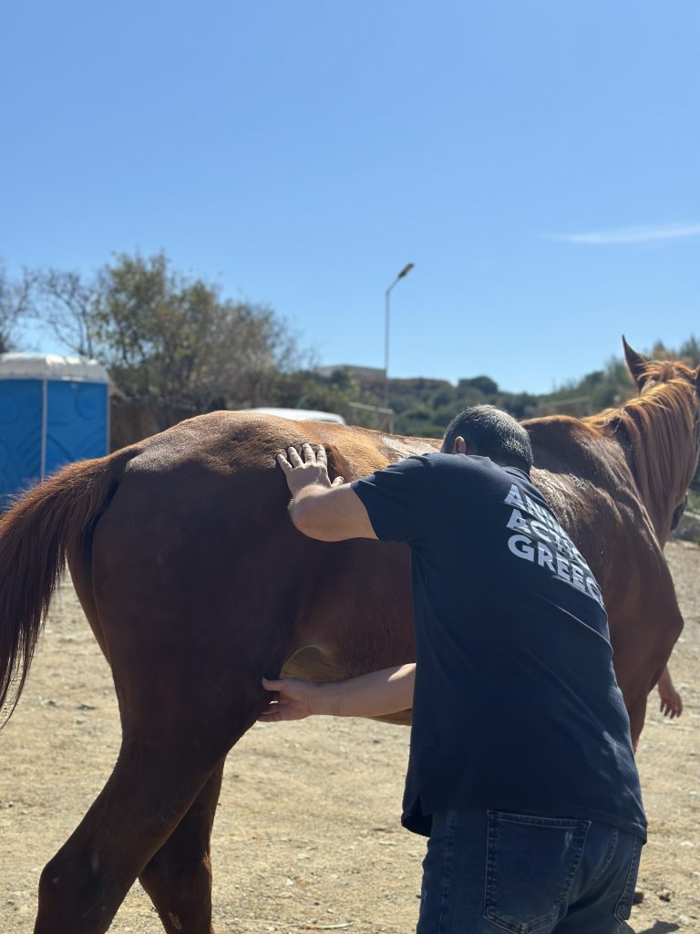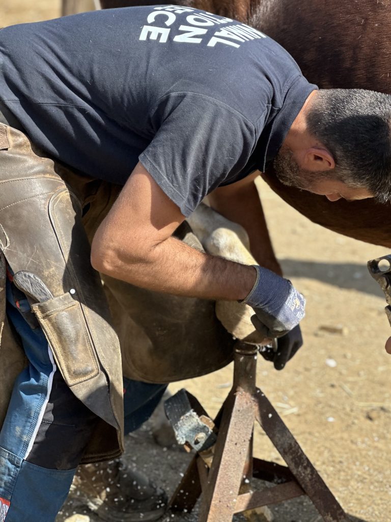 The overall hoof condition was good. Since the owner shoes the horses himself, Tasos demonstrated correct shoeing techniques, highlighting key points to watch for and common mistakes to avoid.