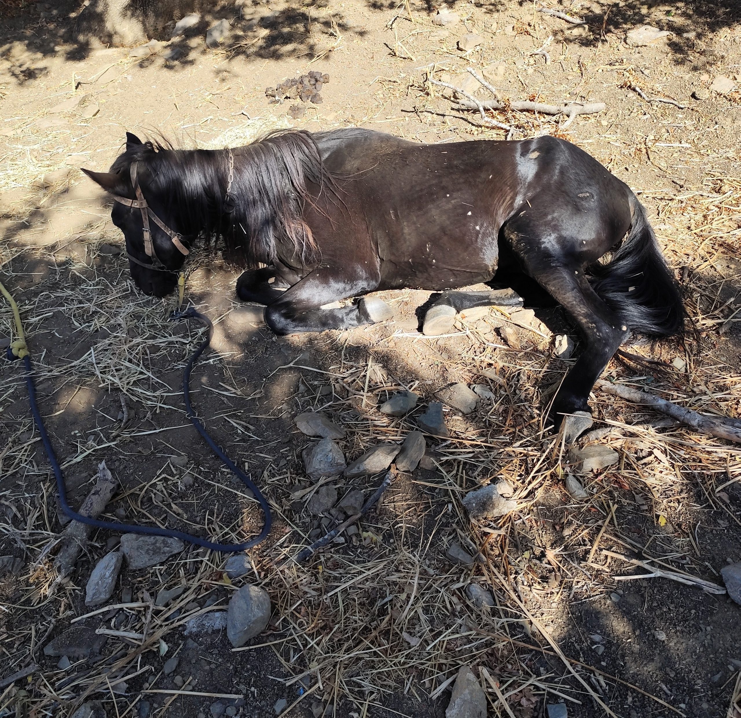 A serious health case was also treated in a nearby village in Leros. An adult horse had developed instability and severe trembling the day before the team’s arrival, which worsened until the animal collapsed. The symptoms were suspect for infectious encephalitis. The horse was treated with strong antibiotics and steroids, and the recovery was remarkable—within three days the animal was standing again, the spasms had ceased, and it returned to normal condition.