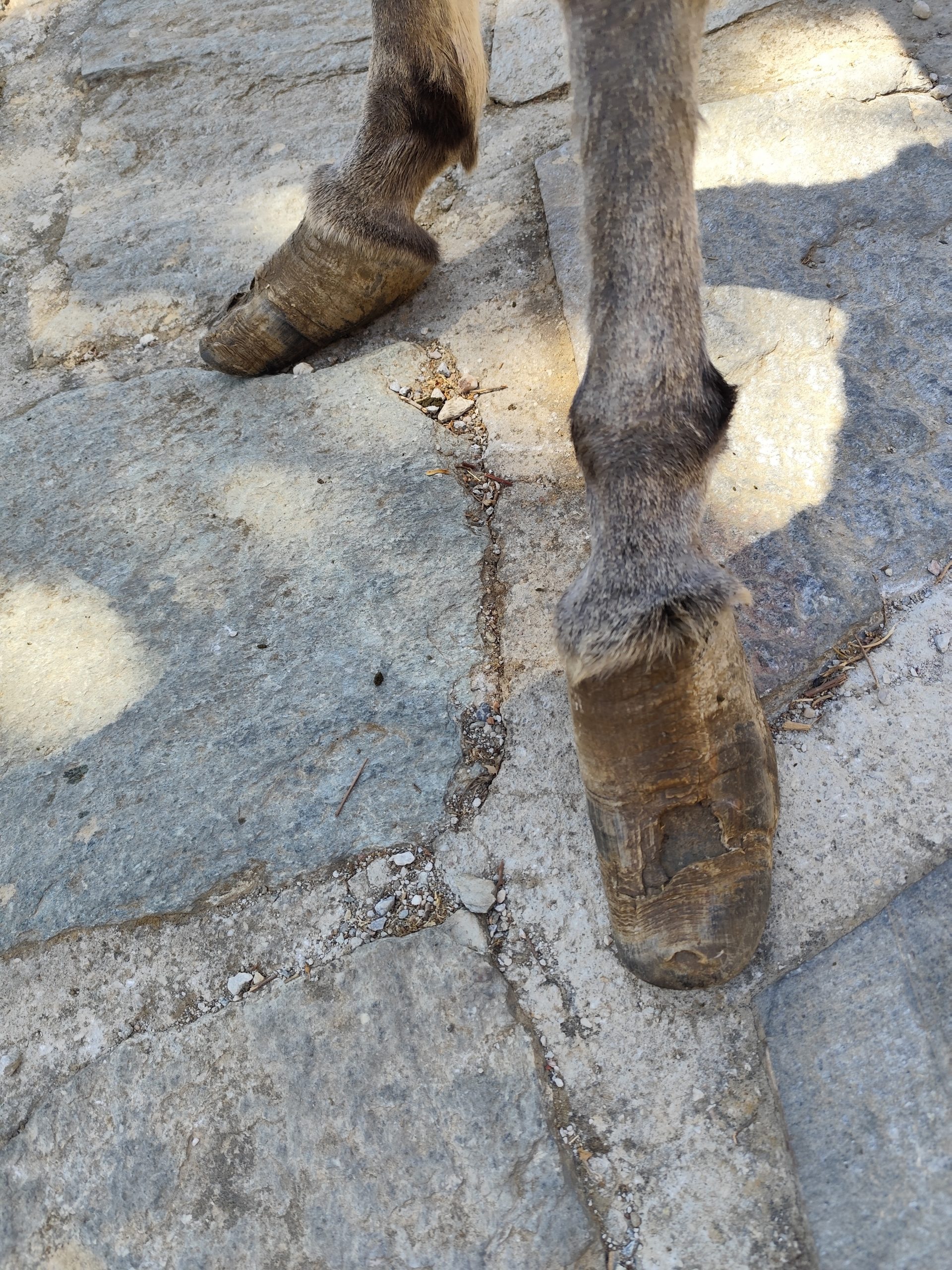Farriery: Regularly working equines required minimal hoof trimming, as regular movement on the terrain helps wear their hooves naturally. Trimming efforts focused primarily on corrective shaping to improve hoof balance and ensure comfort during work. However, due to the absence of a resident farrier on Kea, twelve animals not used regularly showed signs of overgrowth, highlighting the critical importance of even one annual visit in maintaining hoof health and preventing long-term issues.