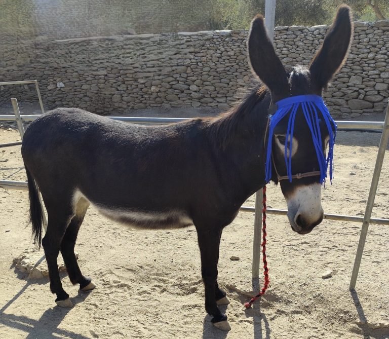 One more case involves an elderly donkey adopted by a family last year and it was evident that they care for her deeply. However, during this year’s visit, the animal was found to be significantly underweight. Upon discussion with the owners, it became clear that the nutritional plan was insufficient, not due to negligence, but rather due to a lack of awareness regarding balanced nutrition and appropriate deworming practices. To address this, our team provided the owners with detailed, written guidance on the appropriate type and quantity of feed required to support the donkey’s health and well-being. Our Equine Care Programme Coordinator Elisa Geskou followed up the case and indeed the donkey has already taken on some weight.